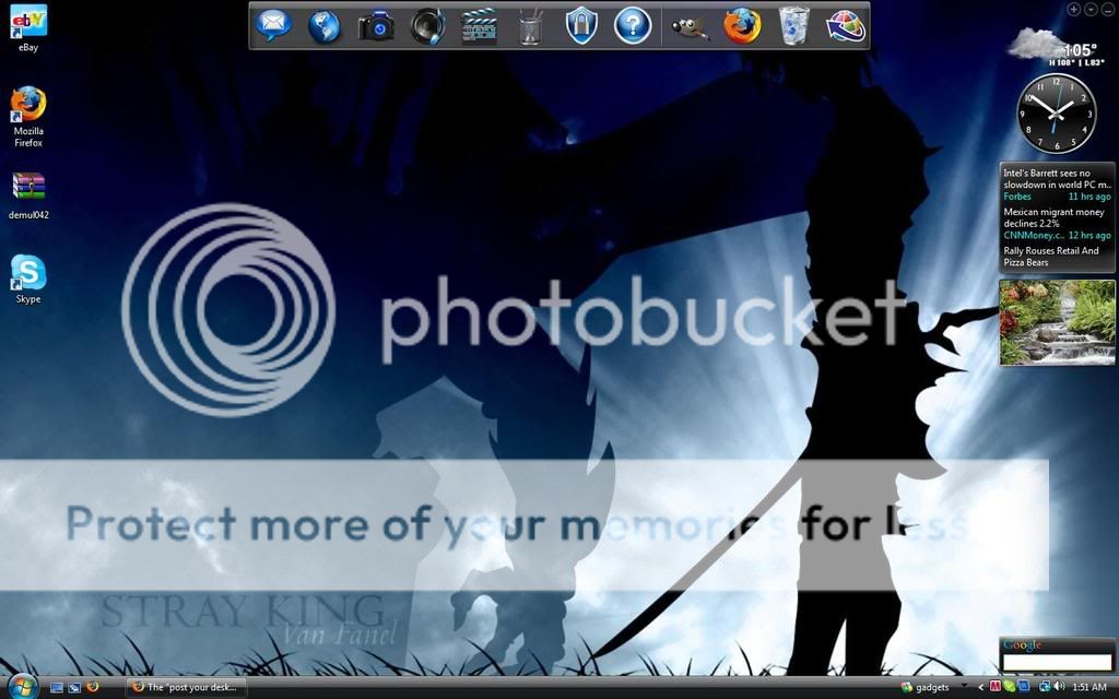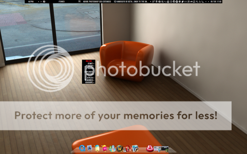 RocketDock for the time and date in the top corner, ObjectDock for the main icons.