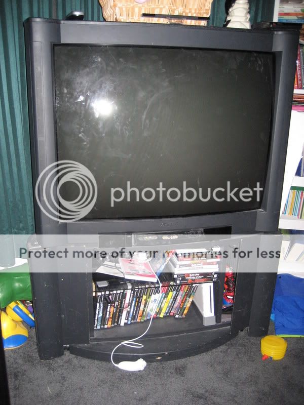 Crappy 36" Mitsubishi tube TV (yeah, no HD.)