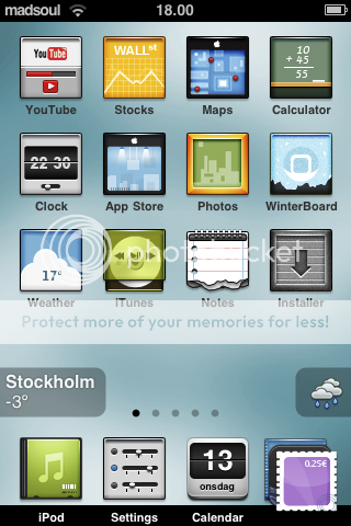 That theme looks alot better than it actually is, its pretty annoying how it only has 3 icons. Almost impossible to use, and kind of pointless and time consuming if you really want to use it :(