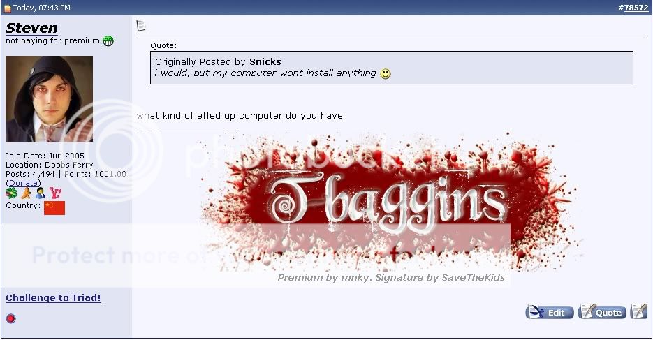 Best sig and av, 100,000 points![CENTER][size=1][URL=http://forums.qj.net/showthread.php?t=65979]The Ultimate QJ FAQ / Guide[/URL] | [URL=http://forums.qj.net/showthread.php?t=13798]Posting Guidelines[/URL] | [URL=http://forums.qj.net/showthread.php?t=16857]What NOT To Post[/URL] | [URL=http://forums.qj.net/showthread.php?t=37144]How to search[/URL]