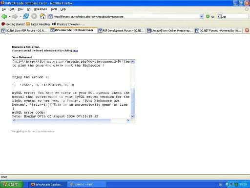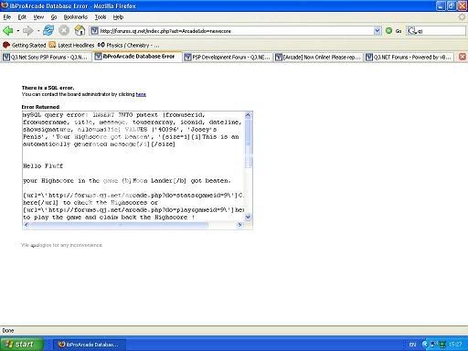 mySQL error: You have an error in your SQL syntax; check the manual that corresponds to your MySQL server version for the right syntax to use near 's Penis', 'Your Highscore got beaten', '[size=1][i]This is an automatically gene' at line 1